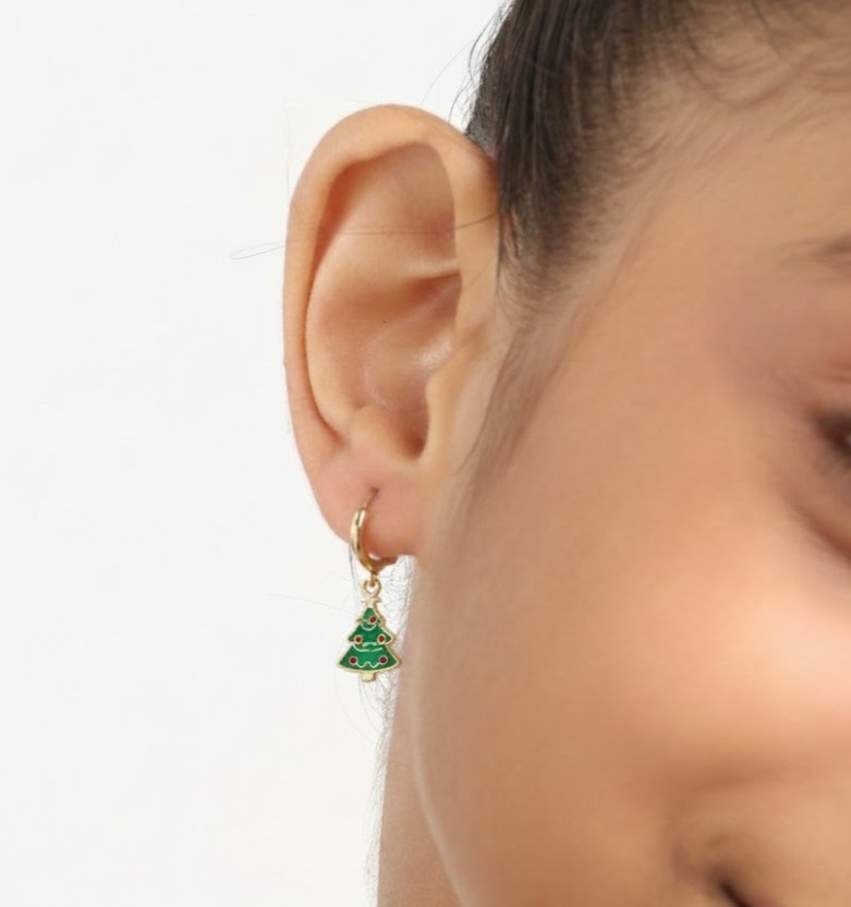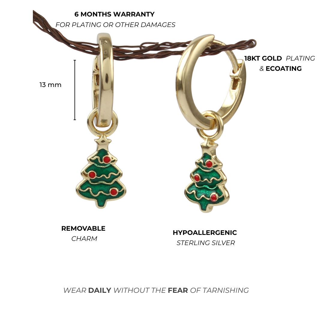 • Design: Hoop earrings with removable Christmas tree charm (2-in-1 style)