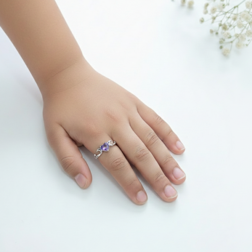 Add a touch of sparkle and charm to any outfit with this stunning Silver Girls Ring. Crafted from high-quality sterling silver, this delicate piece features a striking blue heart-shaped cubic zirconia at its center, radiating vibrant color and elegance. The heart-shaped stone symbolizes love and affection, making it a perfect gift for a special young girl or a sweet treat for yourself. The timeless design ensures it complements both casual and formal styles, adding a pop of color to any occasion. A cute, complimentary gift box is included with this ring!