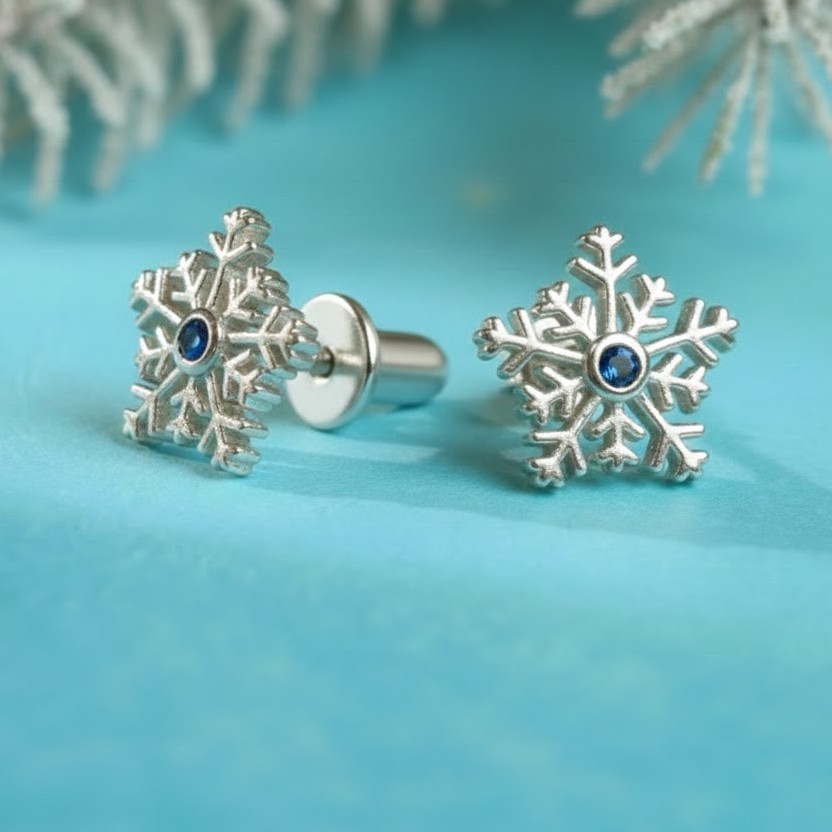 - Stunning Accents: Features vibrant blue center stones that add a pop of icy color to the classic snowflake shape.