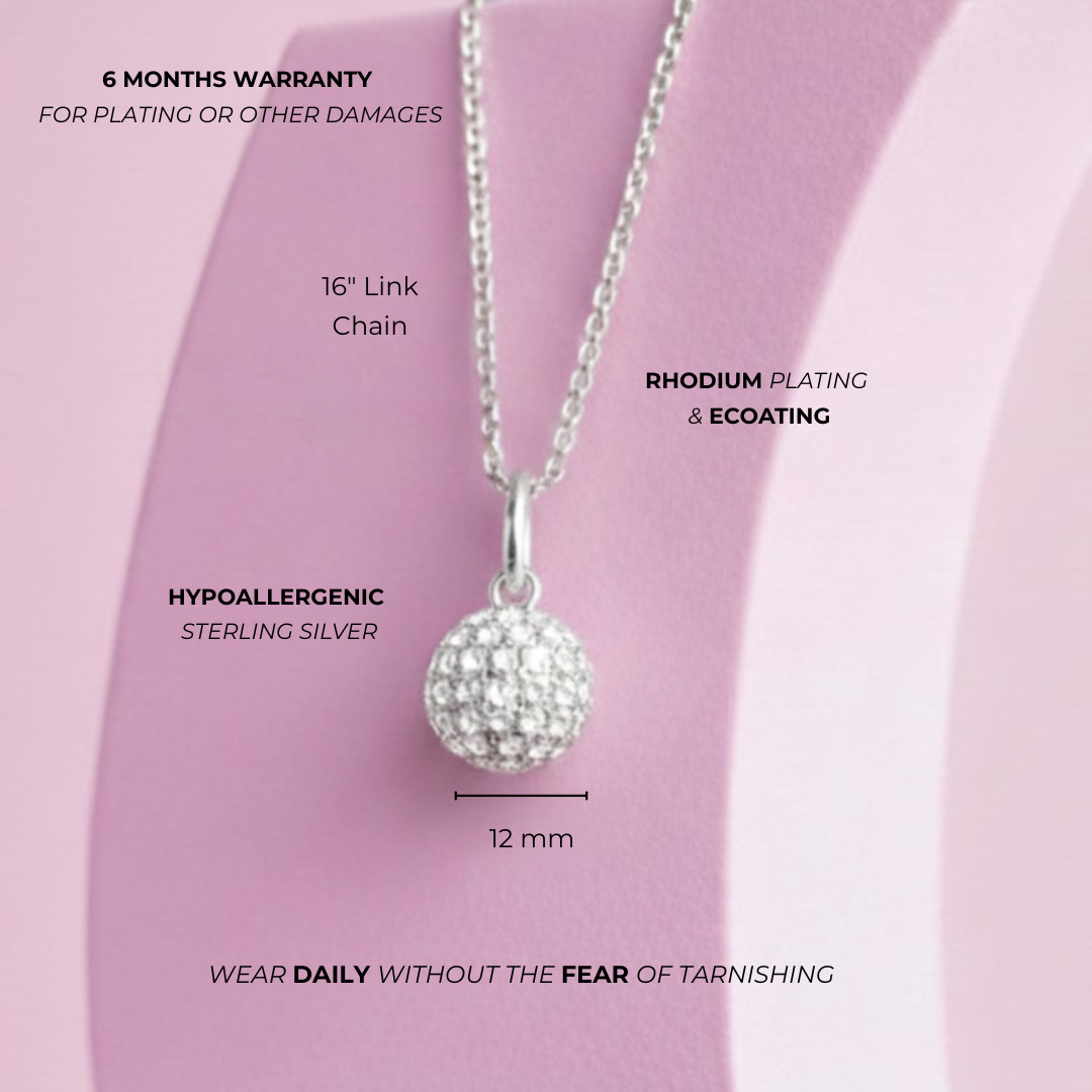 Shiny, sparkly, and ready to party — our Disco Ball Pendant brings all the fun in one dazzling drop. With a glittering silver finish and crystal-studded charm, it’s the perfect piece for little stars who love to shine bright.