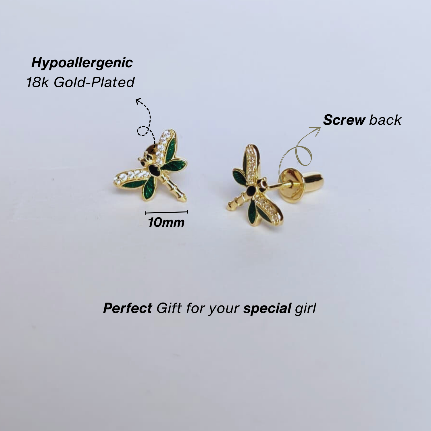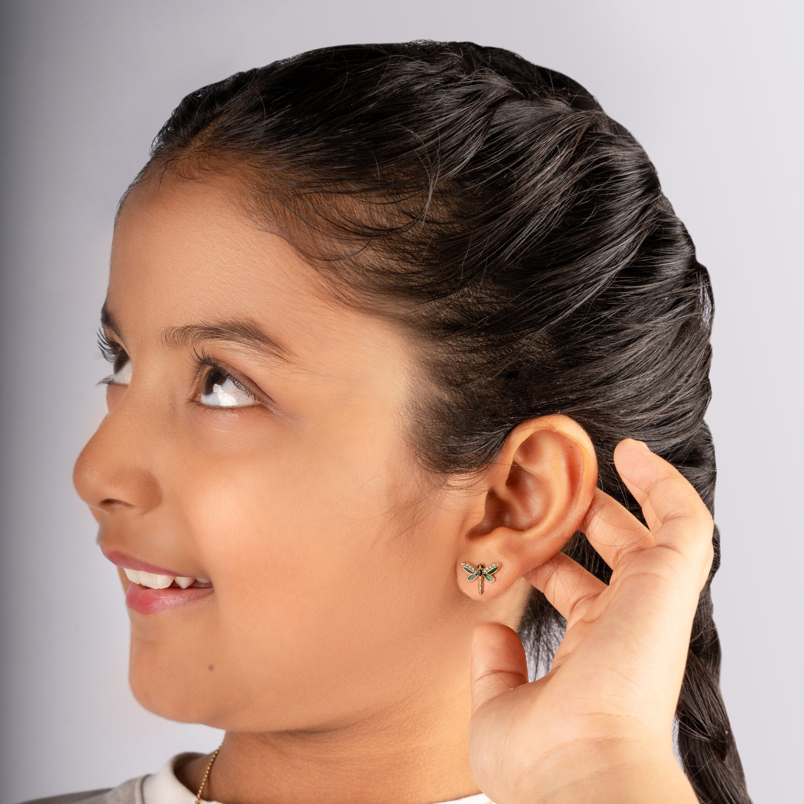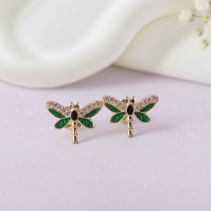 Add a touch of whimsy to your little one’s jewellery collection with these adorable dragonfly stud earrings. Crafted from high-quality 925 sterling silver, these earrings are gentle on sensitive ears and safe for everyday wear. The charming dragonfly design features vibrant enamel wings with sparkling accents, perfect for adding a pop of color and fun to any outfit. Lightweight and durable, these earrings make a delightful gift for birthdays, holidays, or special occasions.