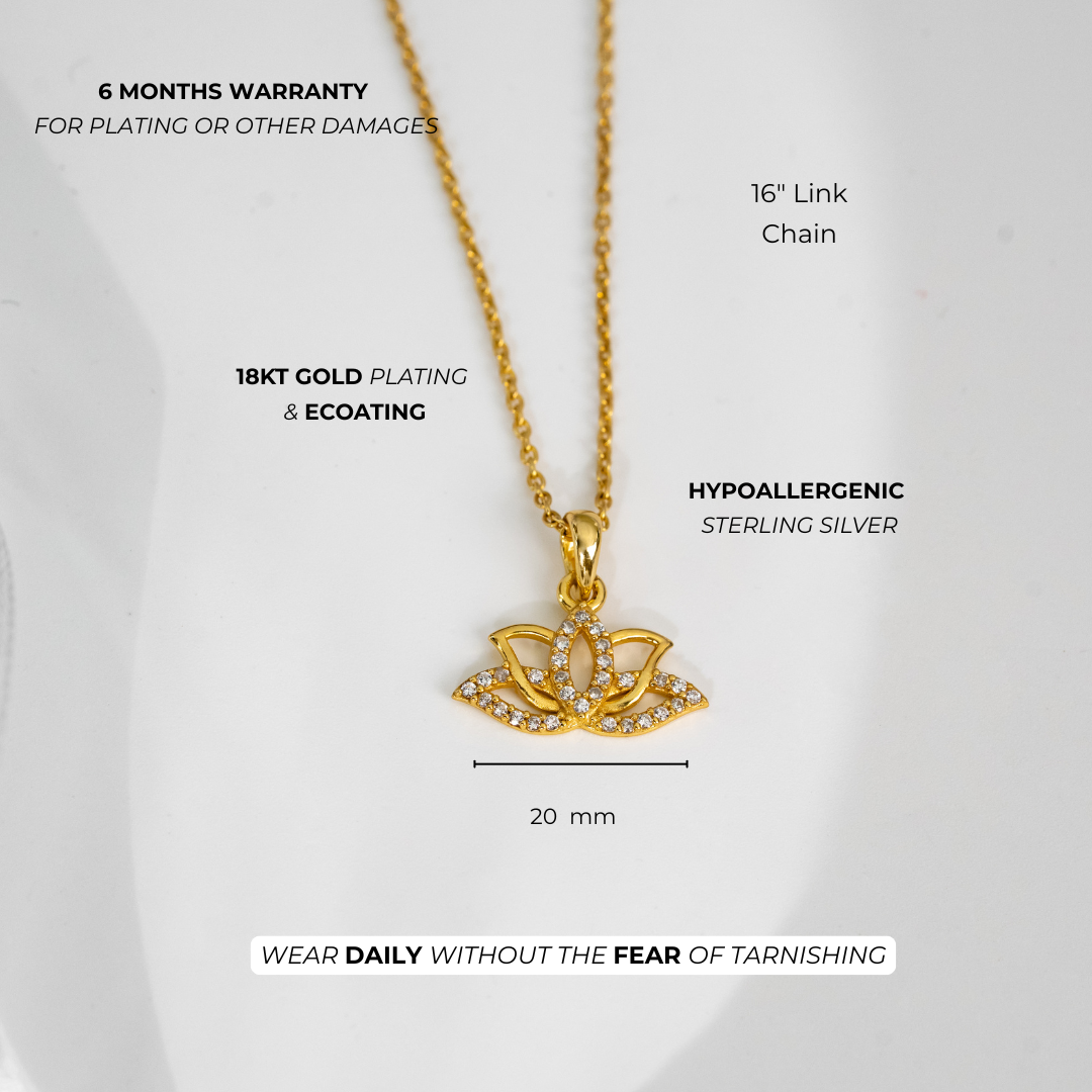 The iconic lotus design is fully paved with sparkling Cubic Zirconia (CZ) stones, giving the 18k Gold Plated 925 Sterling Silver Pendant a brilliant, eye-catching shine. It can be worn as a beautiful necklace centerpiece or easily attached to a charm bracelet, offering versatile style options. This meaningful pendant makes a thoughtful, long-lasting gift for any special occasion.