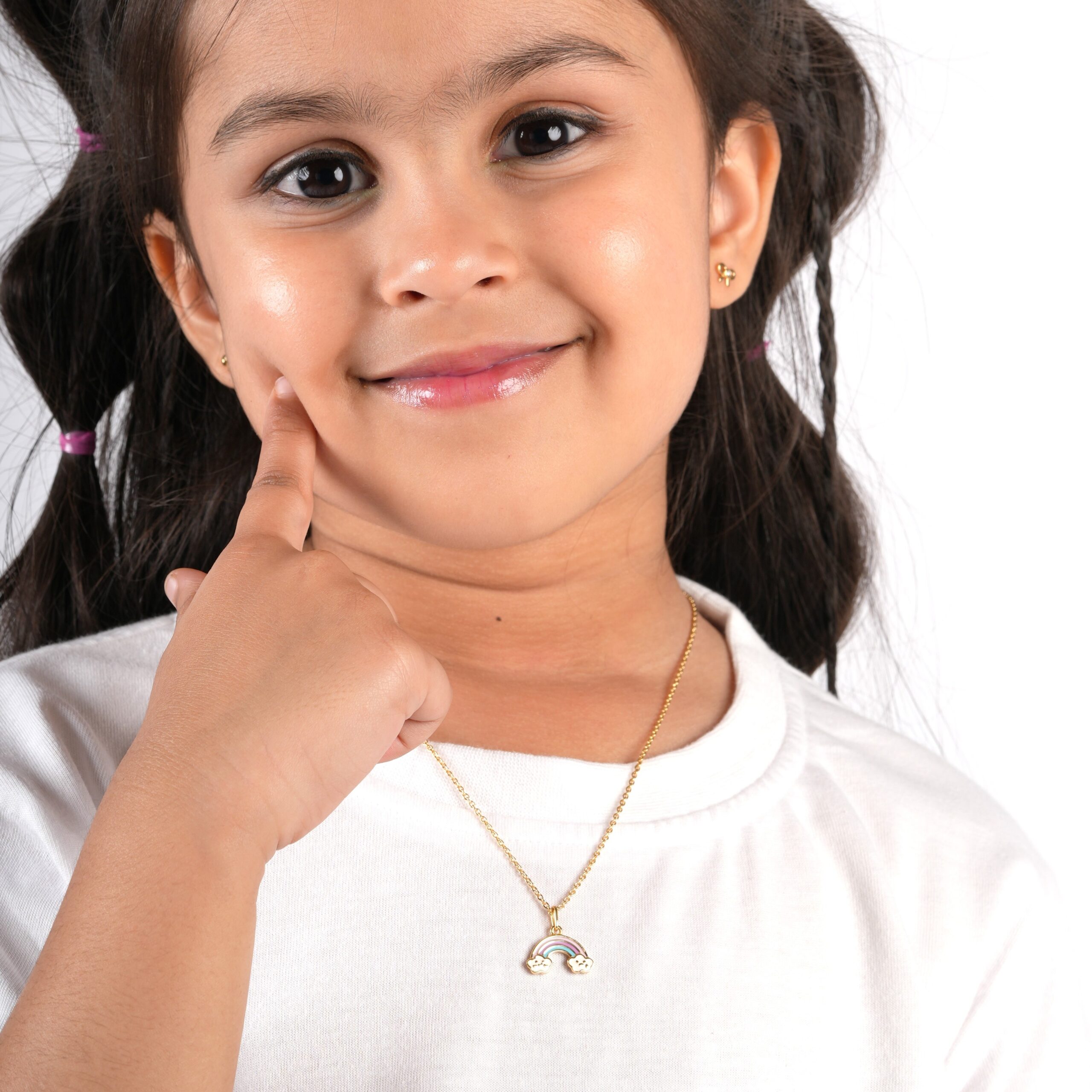 Add some magic to her special day with this beautiful rainbow outline Jewellery Set. This beautiful rainbow pendant set for little girls is a unique piece of jewellery that will add some imagination and magic to her jewellery collection. A stunning piece finely crafted in 925 Silver and plated in 18kt gold, great for young girls who have sensitive skin. Pair this beautiful pendant with your little girls favorite chain. This pendant set arrives packaged into a gift box for easy gifting.
