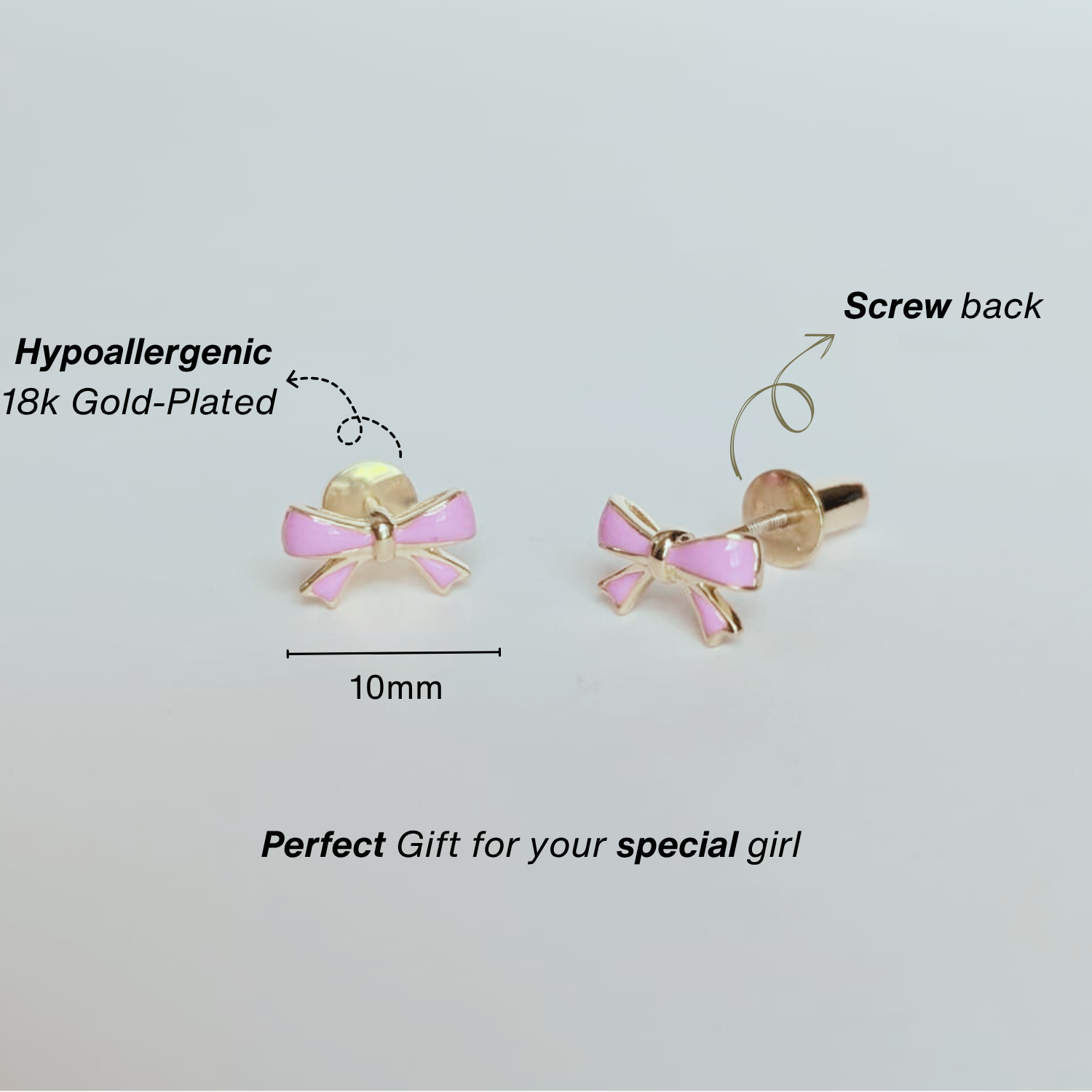 Whether it’s a tea party or her first recital, these dainty bows make every moment feel magical. Lightweight and hypoallergenic, they’re made for all-day twirls and twinkly smiles.