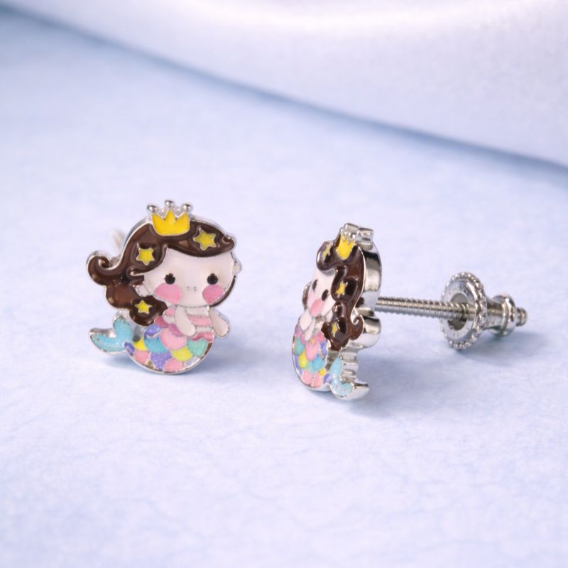 Bring fairytale magic to your child’s jewellery collection with the Little Mermaid Princess Stud Earrings, specially designed for kids and young girls. These adorable earrings feature a cute mermaid princess design with colorful enamel detailing, inspired by ocean fantasies and storybook charm. Crafted from pure 925 sterling silver, these studs are lightweight, skin-friendly, and safe for sensitive ears. Perfect for everyday wear or special occasions, they add a playful yet elegant touch that every little girl will love.