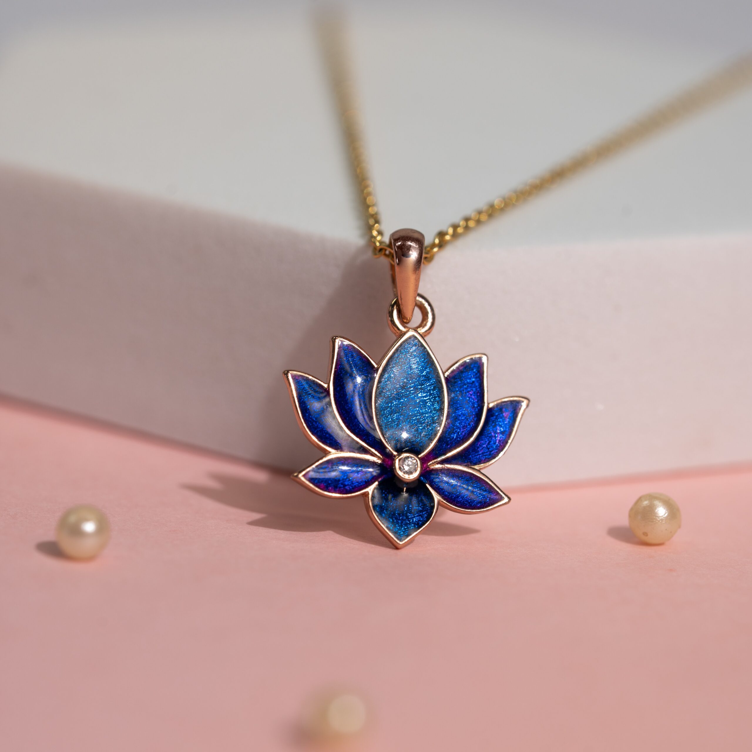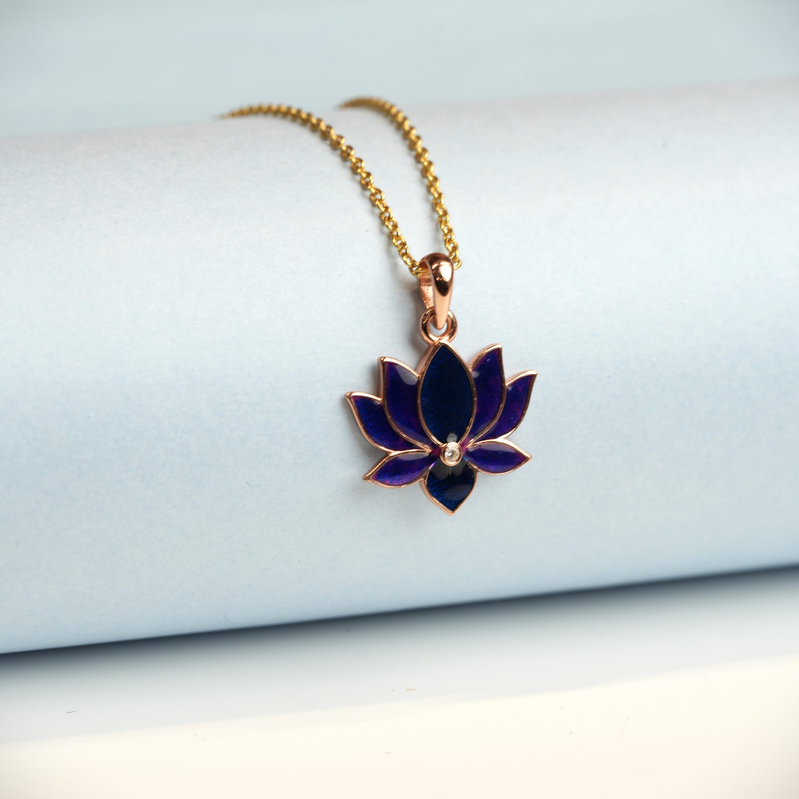 The lotus flower design is filled with a rich, dark blue enamel that contrasts beautifully with the warm rose gold edge. This Rose Gold Plated 925 Silver Pendant is a wonderful symbol of purity and grace. It can be worn as a primary necklace pendant or added to a charm bracelet, making it a versatile and sophisticated accessory. It’s a thoughtful and meaningful gift for any occasion.