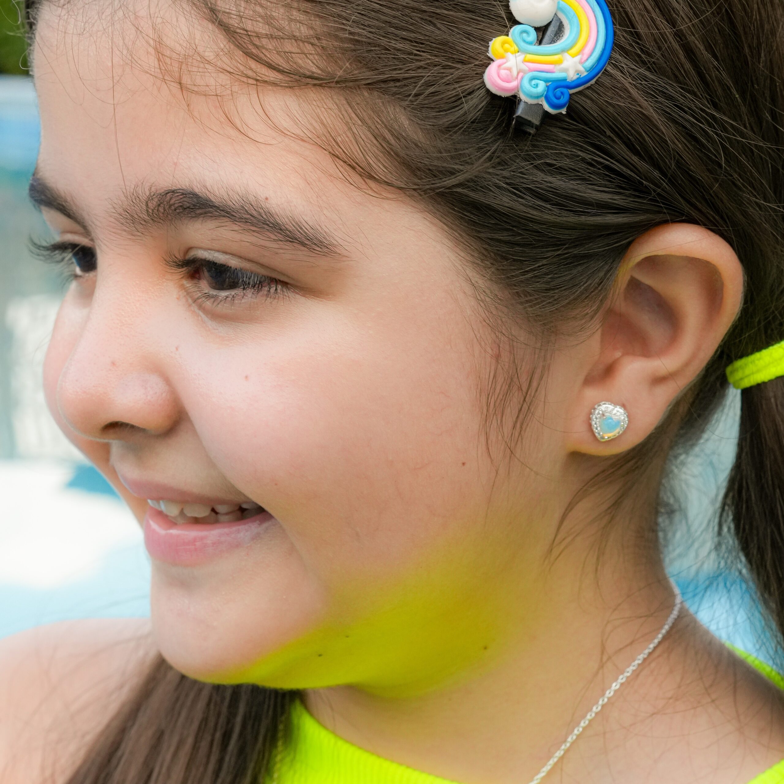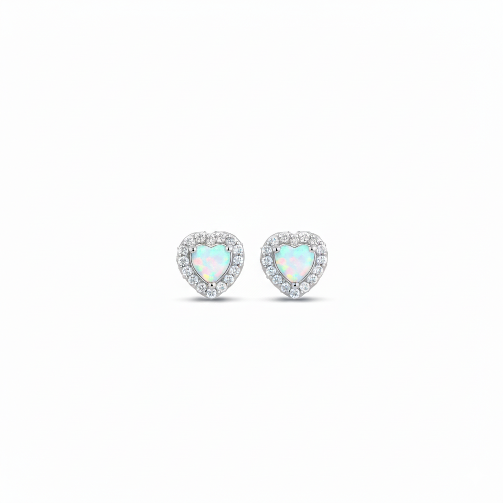 Opal CZ Heart Girl’s Earrings
