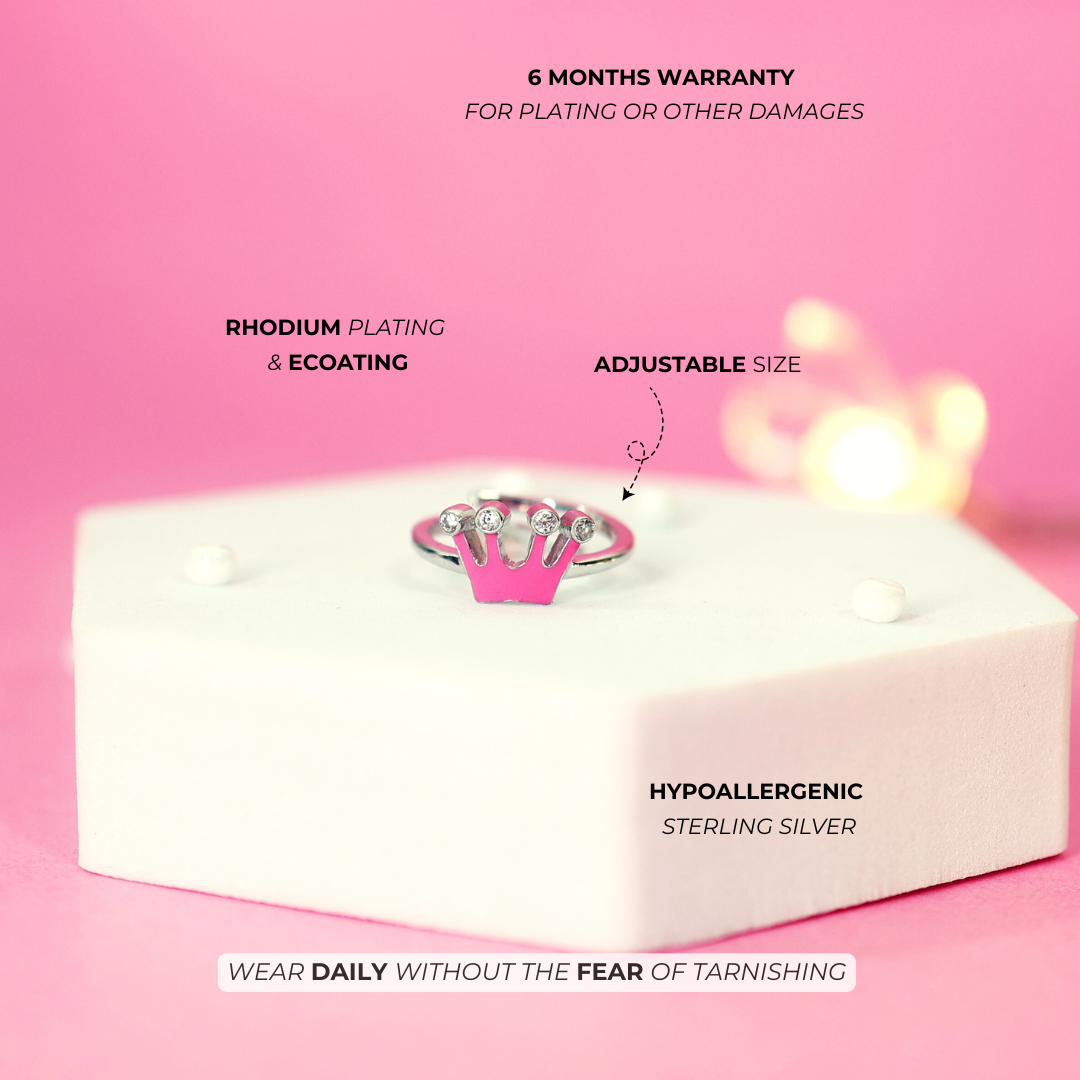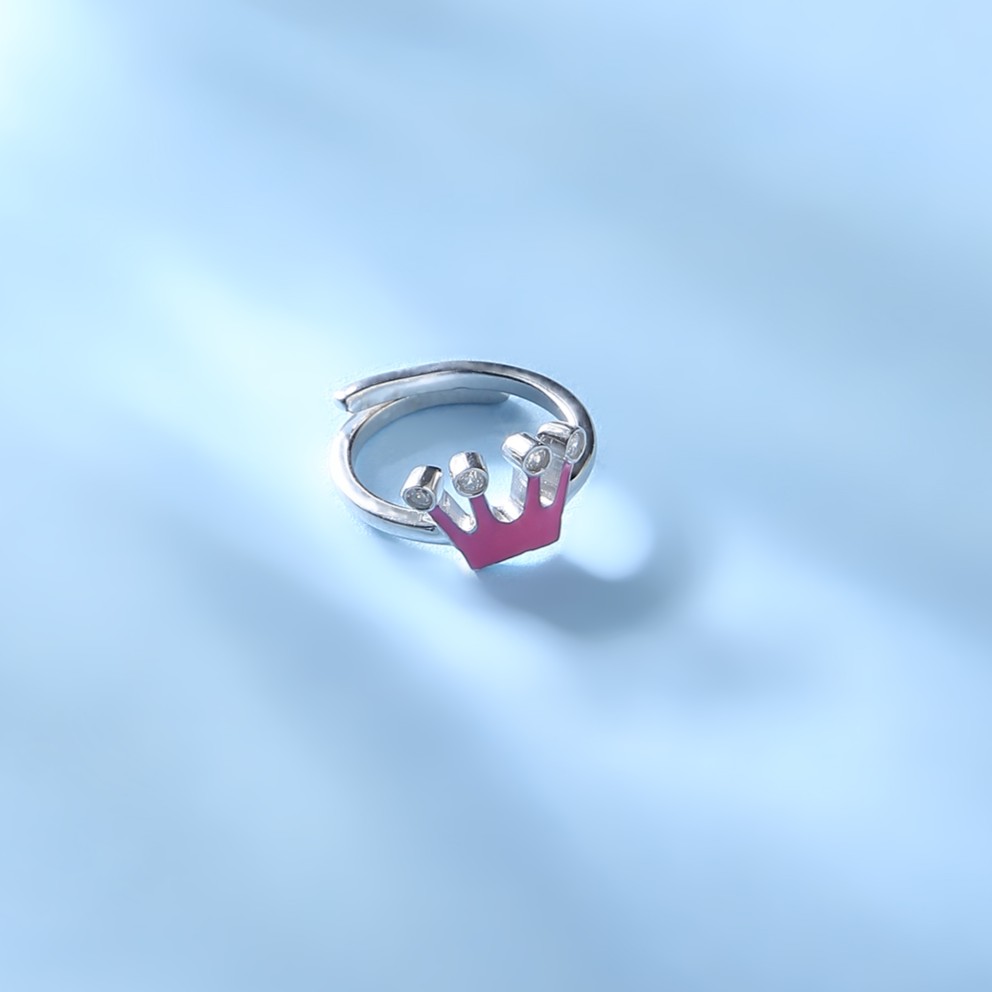 Princess Crown Pure Silver Ring (Pink)