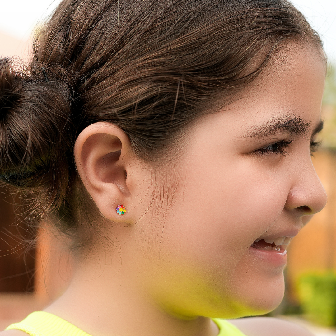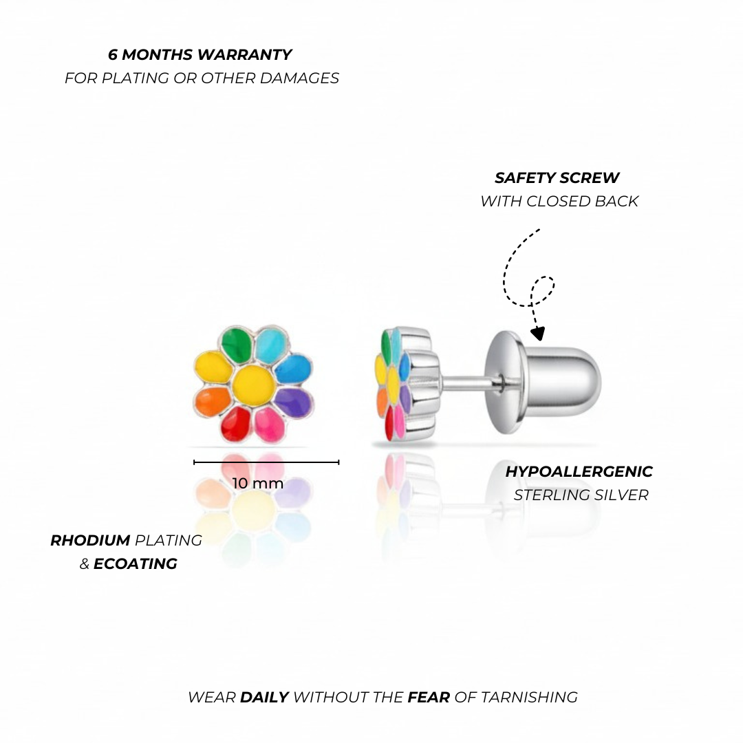 Rainbow Daisy Girls Earrings Enamel – Sterling Silver