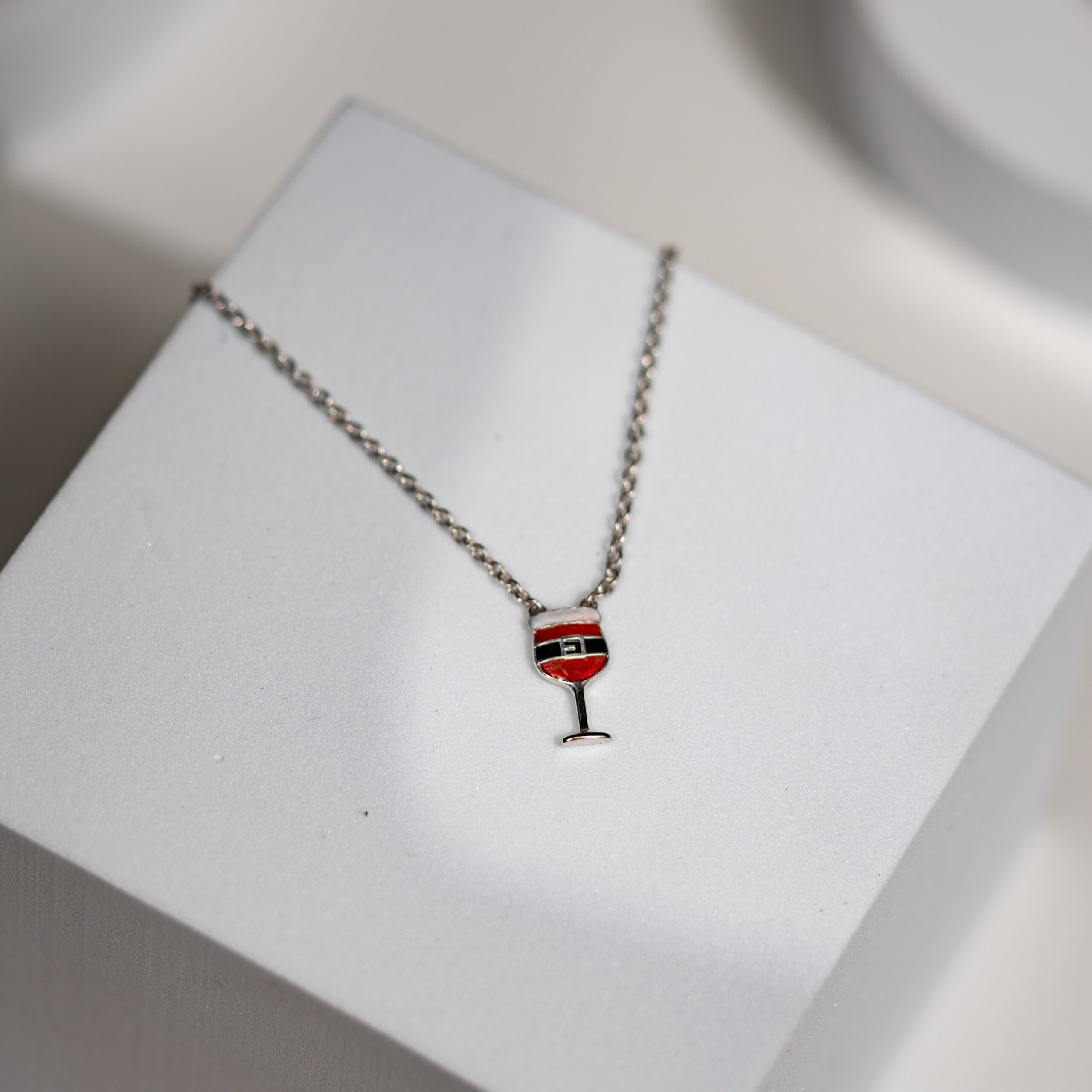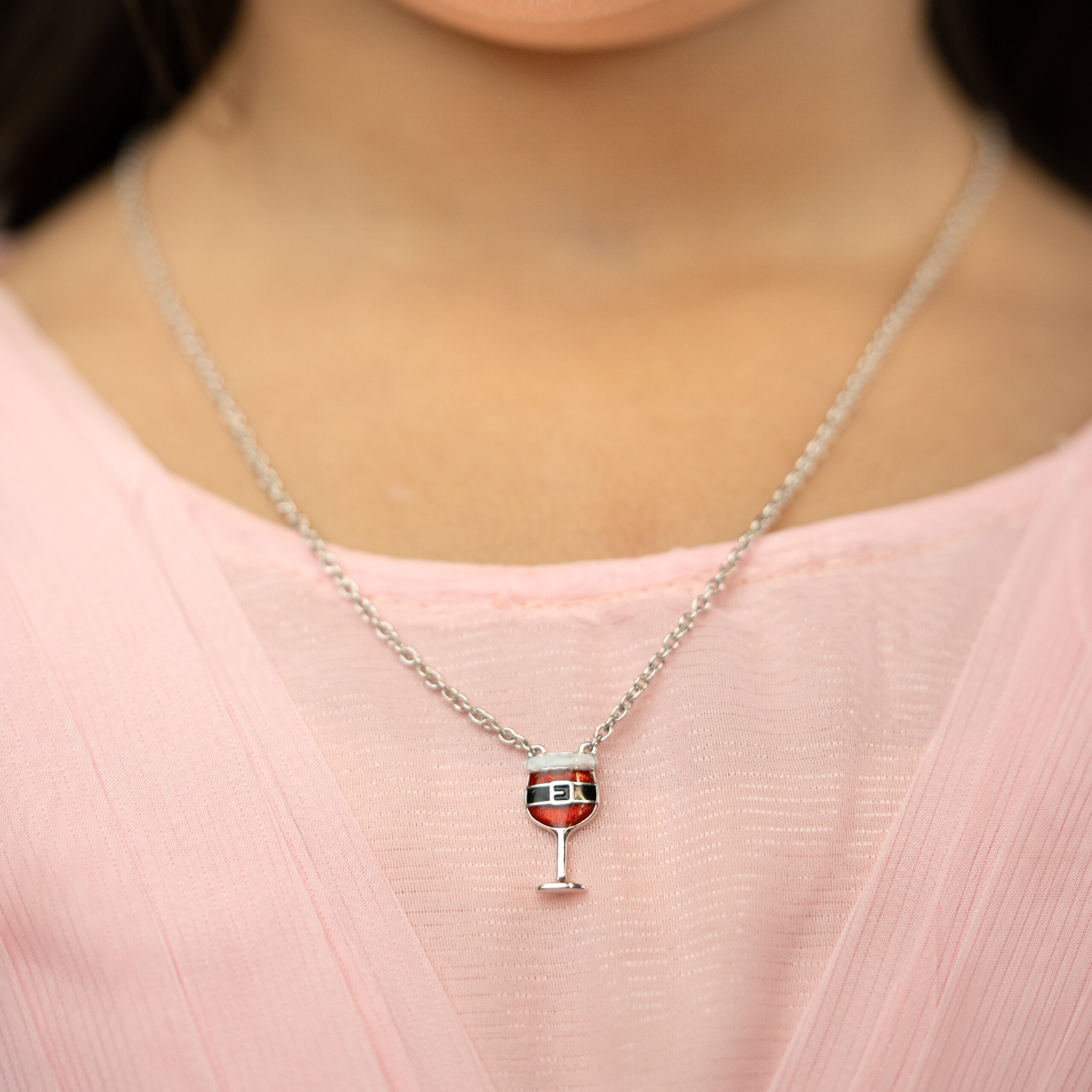 Celebrate the festive season with the hilarious and charming “Santa’s Sip” Novelty Wine Glass Necklace! This unique necklace is crafted from genuine, hypoallergenic 925 sterling silver and comes complete with a delicate sterling silver chain.The fun charm is shaped like a wine glass but features vibrant red, black, and white enamel to look just like Santa Claus’s suit! This clever Novelty Wine Glass Necklace is a fantastic accessory for holiday parties, ugly sweater events, or as a cheeky gift for Christmas lovers. The durable 925 Sterling Silver construction ensures this piece is a quality keepsake you can wear year after year.