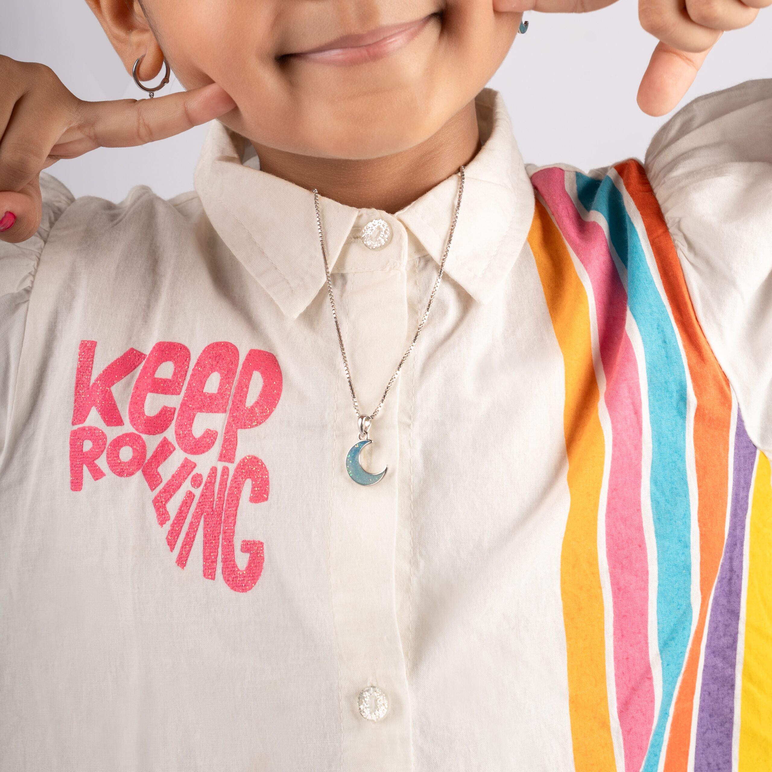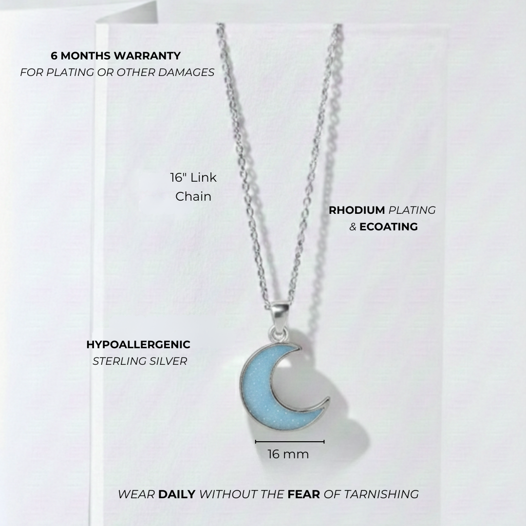 This Sparkling Crescent Moon Kids Pendant is a charming accessory for any little one who loves the stars. Crafted from high-quality 925 sterling silver, this delicate pendant features a lovely crescent moon design with a beautiful blue enamel finish that glitters like a moonlit sky. It’s a wonderful gift that adds a touch of magic to any outfit and is safe for sensitive skin.
