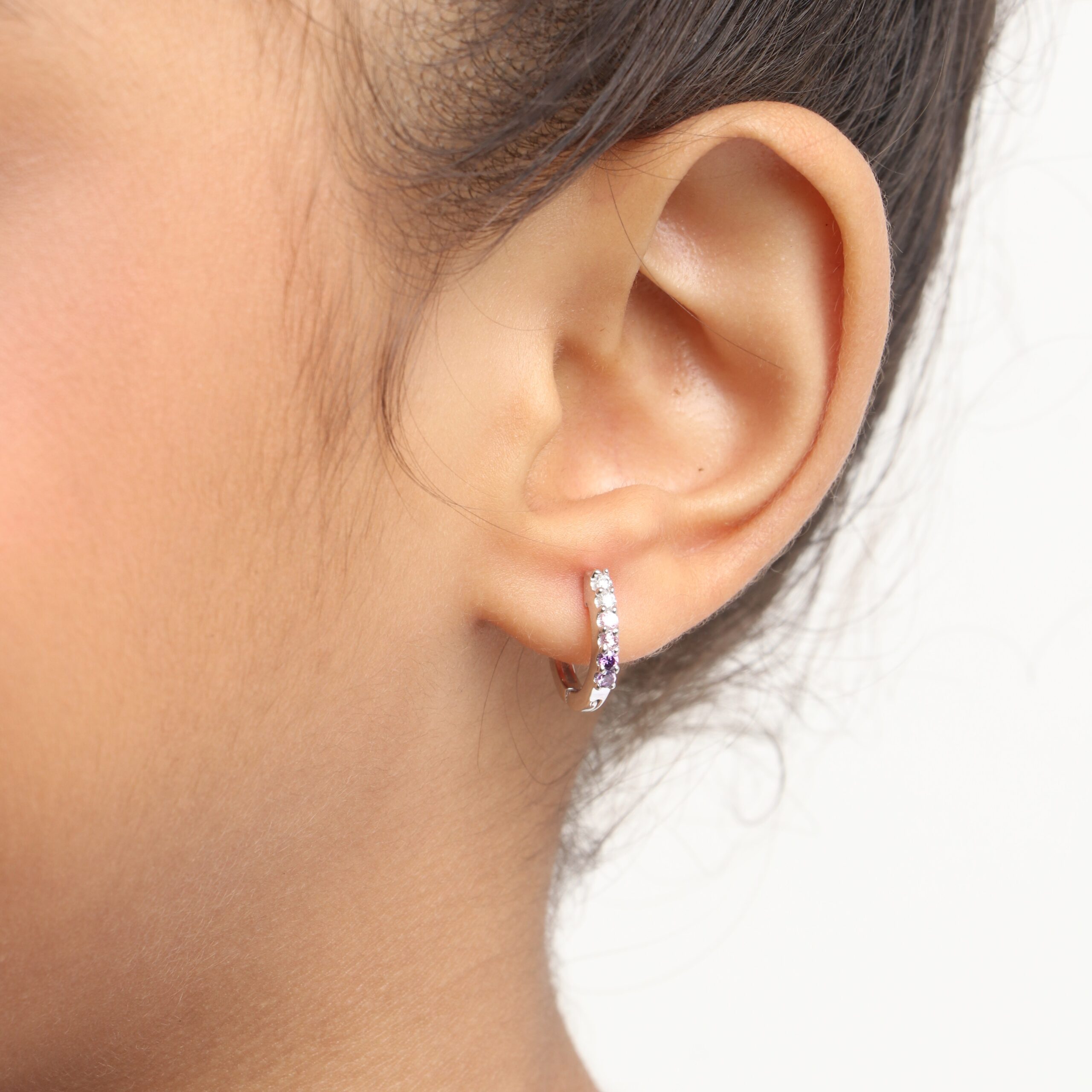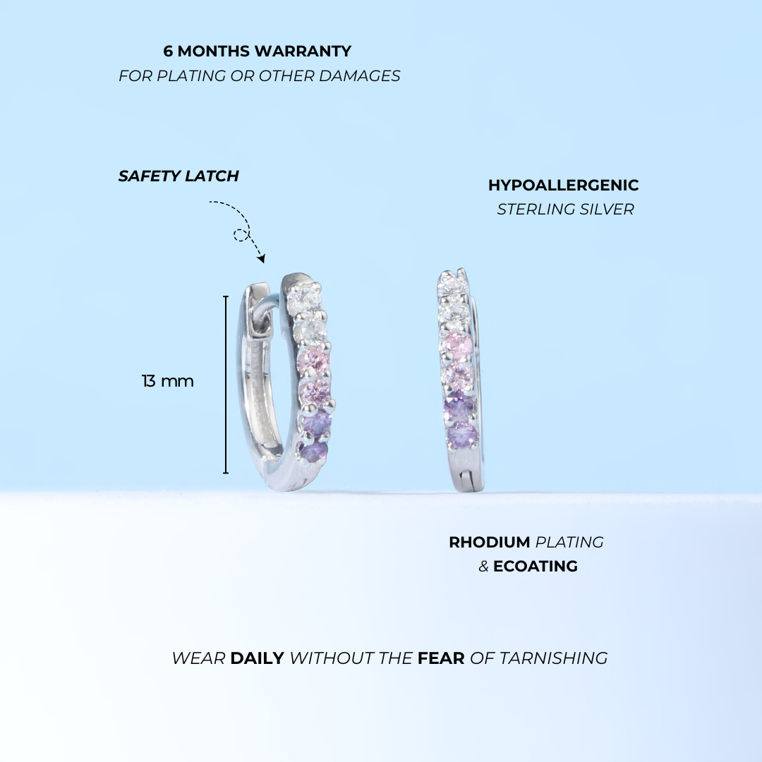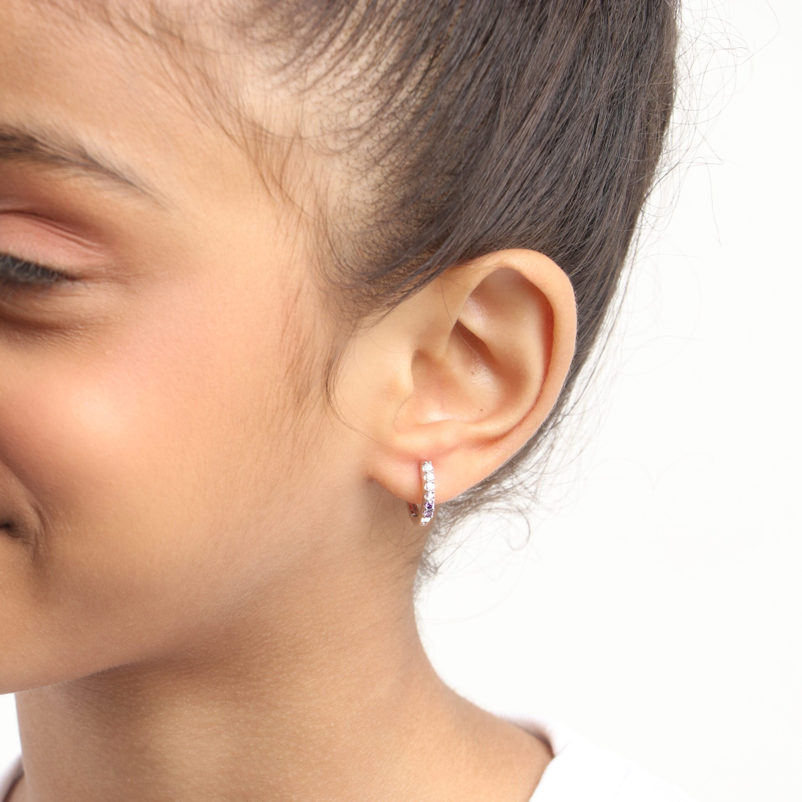Sparkling Pink & Purple CZ Huggie hoops Toddler / Kids Earrings – Sterling Silver