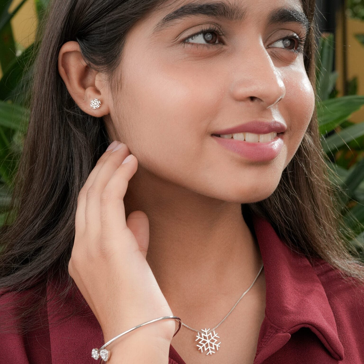 - Care: Silver jewellery must be stored in a zip-lock or airtight container when not being worn. Clean it with a soft cloth for maintaining shine.