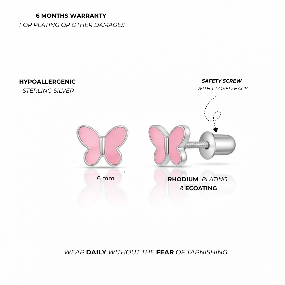 Dazzling 6mm cubic zirconia earrings for toddlers and little girls! The perfect size for all ages, these butterfly earrings for kids are crafted in 925 sterling silver. These hypoallergenic girl’s earrings are completely safe for children with sensitive skin. These toddler & young girl earrings make a perfect gift for any occasion as well as for everyday fashion. A complimentary gift box is included for easy giving!