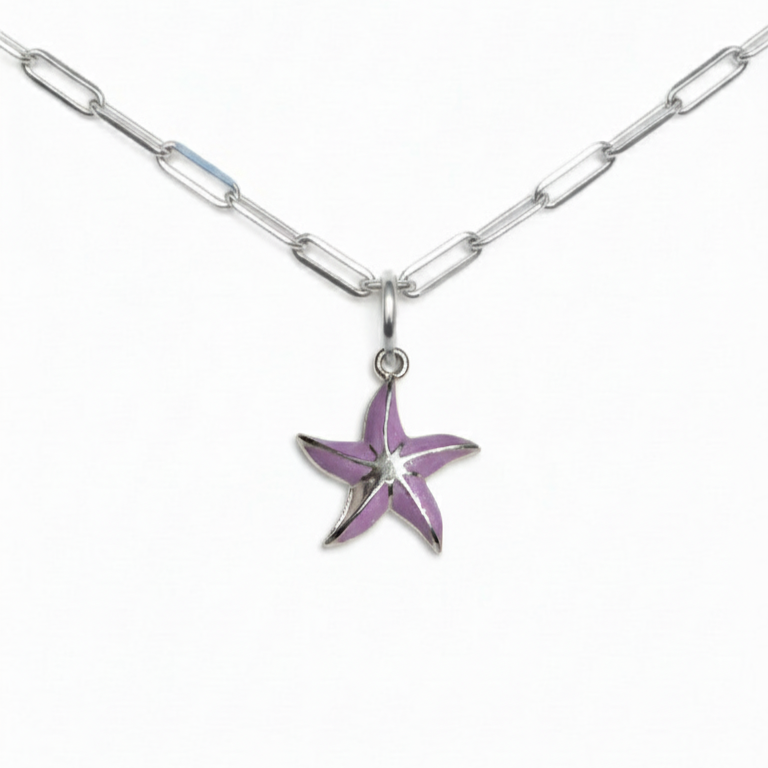 Design: Features a playful starfish with a purple enamel finish that shimmers.