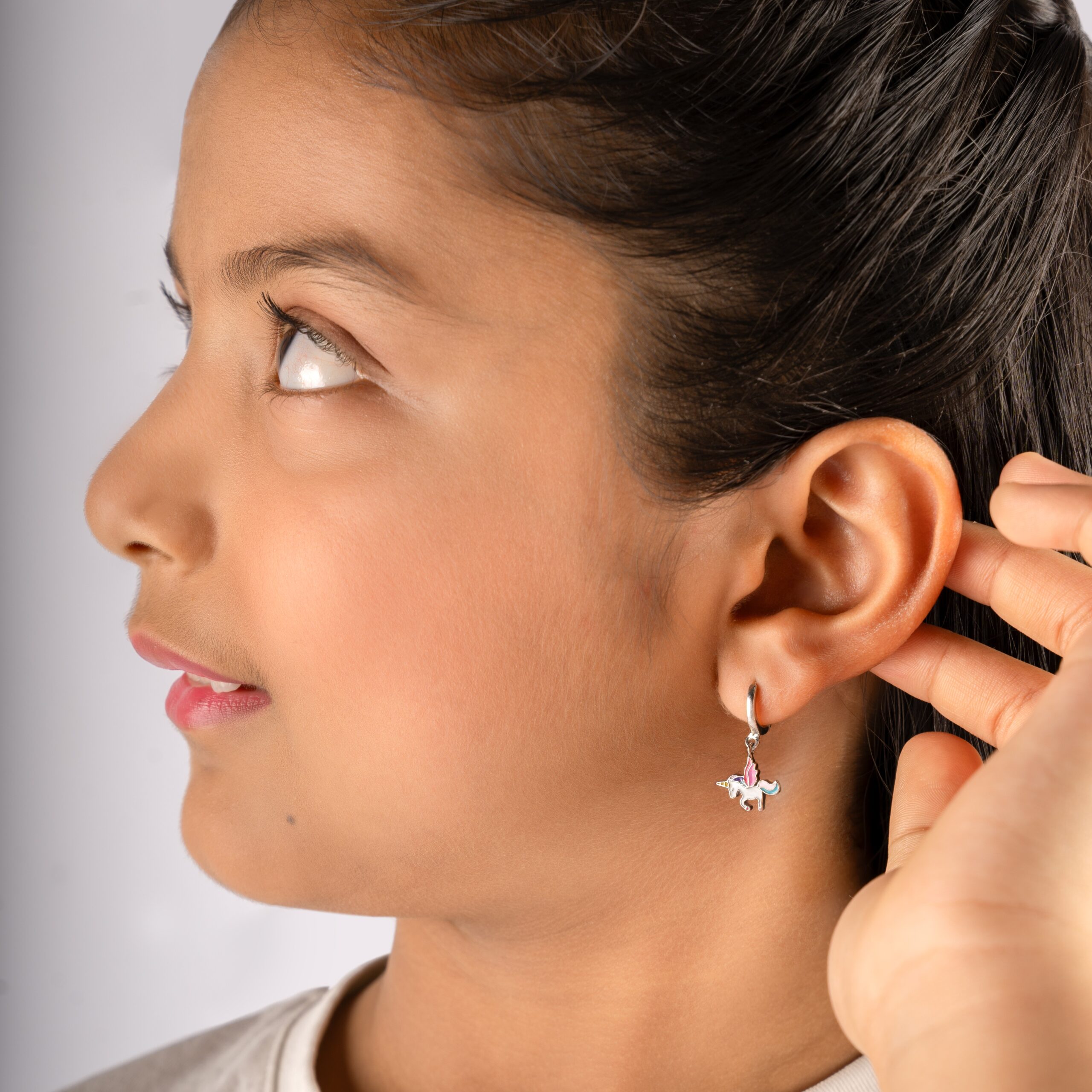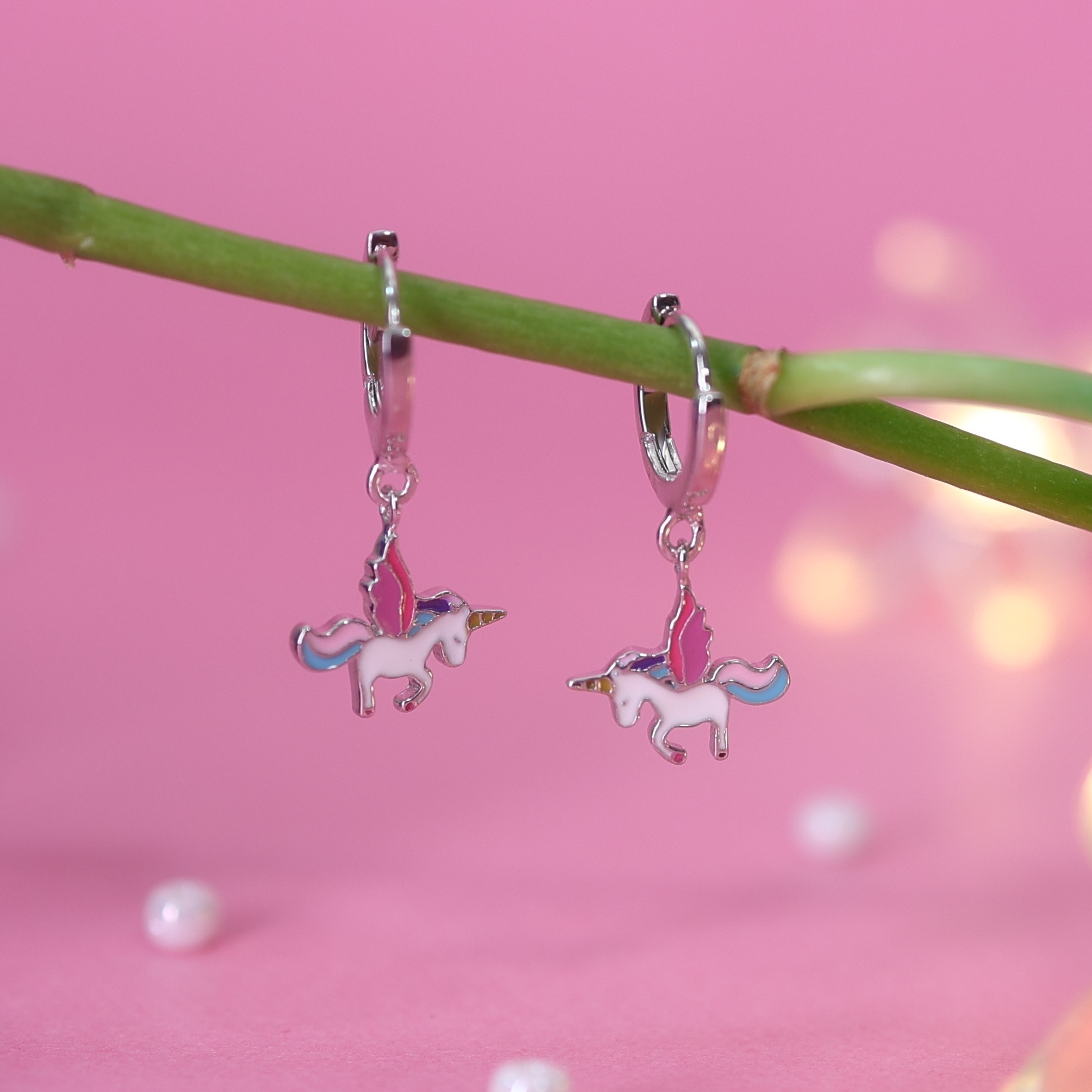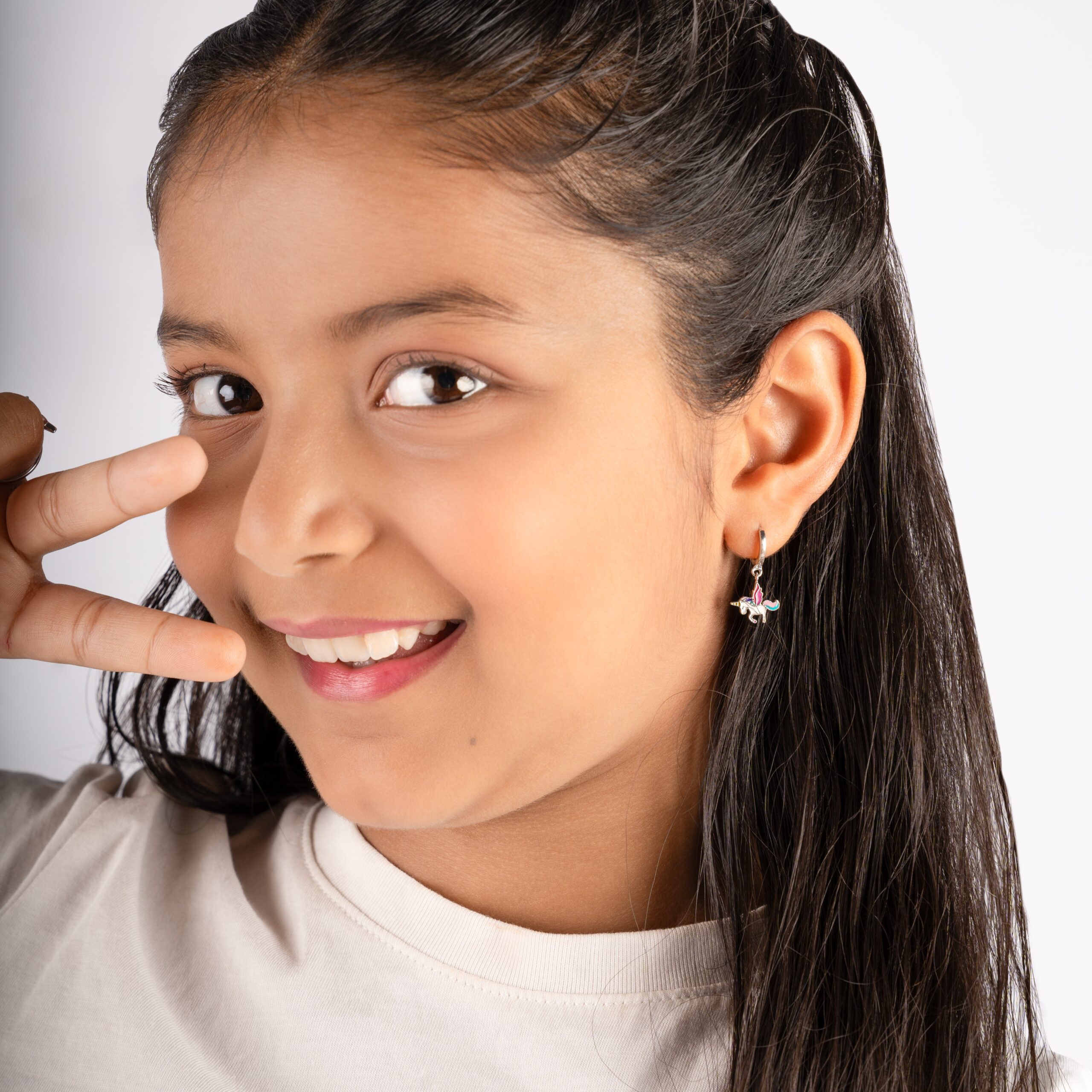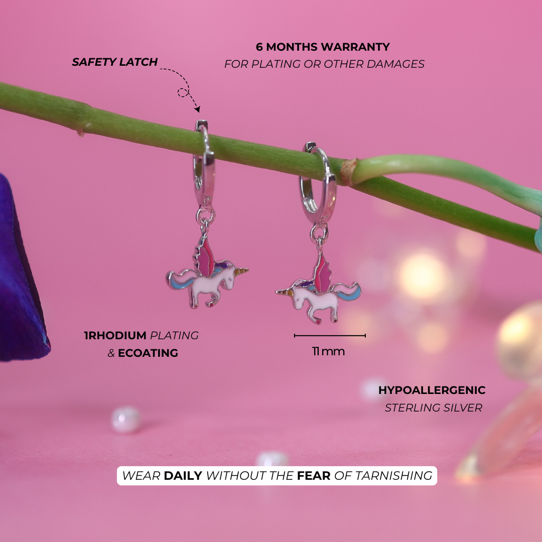 Perfect for everyday sparkle or as a special gift, these earrings are lightweight, hypoallergenic, and safe for sensitive skin. Designed for kids who love unicorns, these hoops make dressing up fun and magical!
