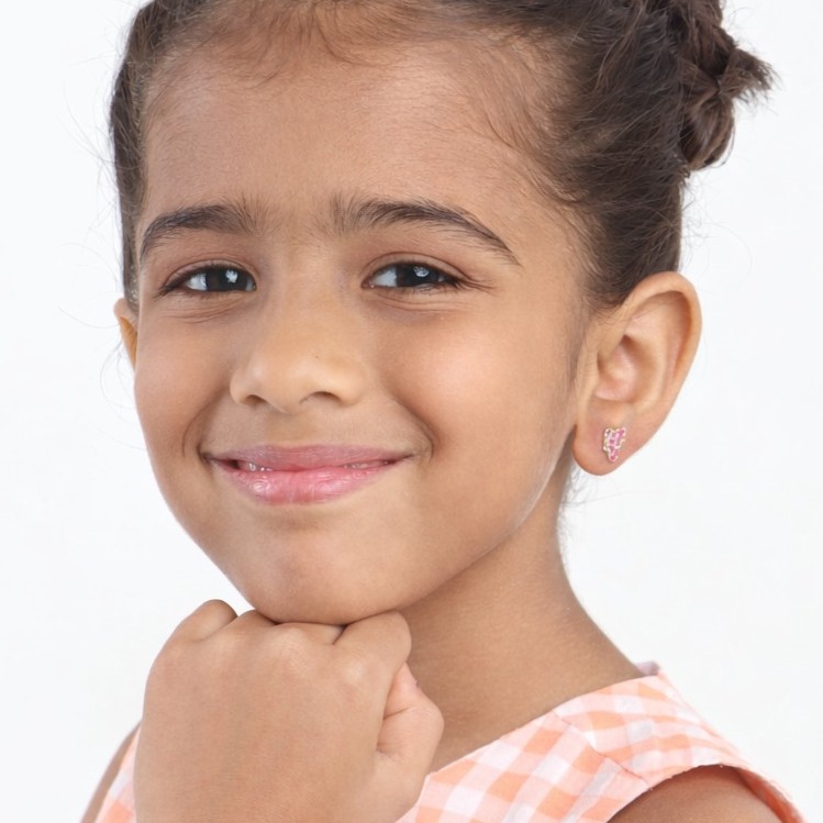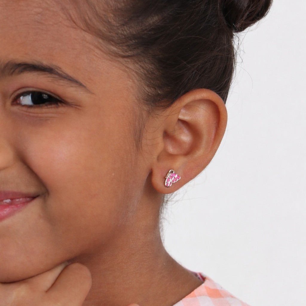 Our ever so delicate and glitter pink butterfly earrings are perfect for the little lady in your life. They feature glitter pink wings on each ear trying to meet at the centre. They can be matched with our pendant combo for an enchanting look. Crafted entirely of 925 sterling silver, makes them naturally hypoallergenic and suitable for children with sensitive ears. They feature threaded posts and a safety back system to ensure your child’s earrings stay comfortably in place at all times. A complimentary gift box is included for easy gift giving!