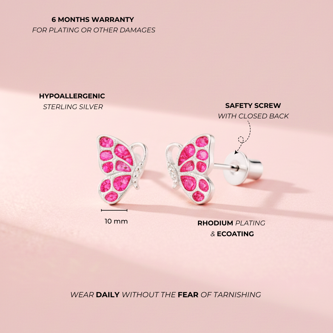 Whimsical Glitter Butterfly Girls Earrings – Sterling Silver