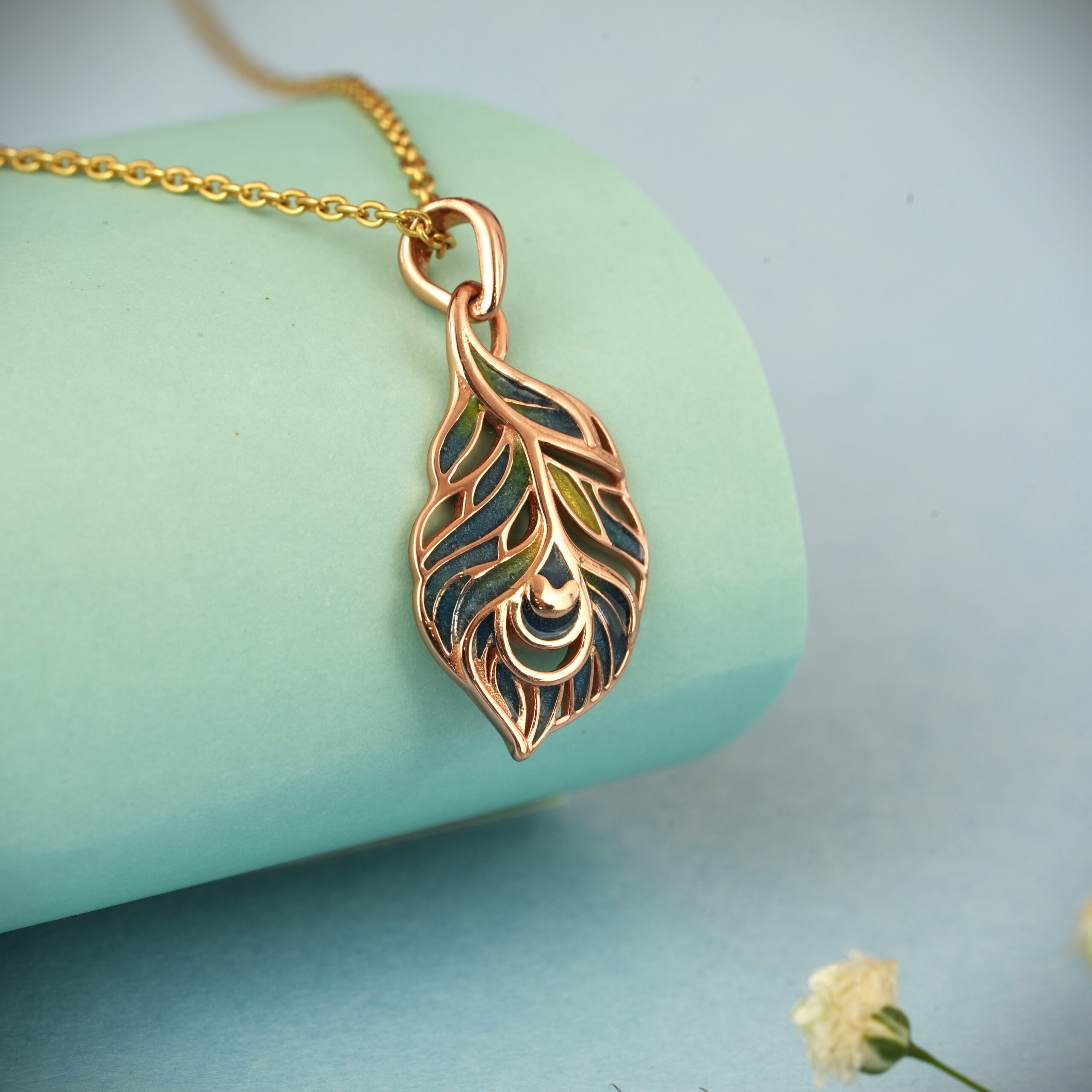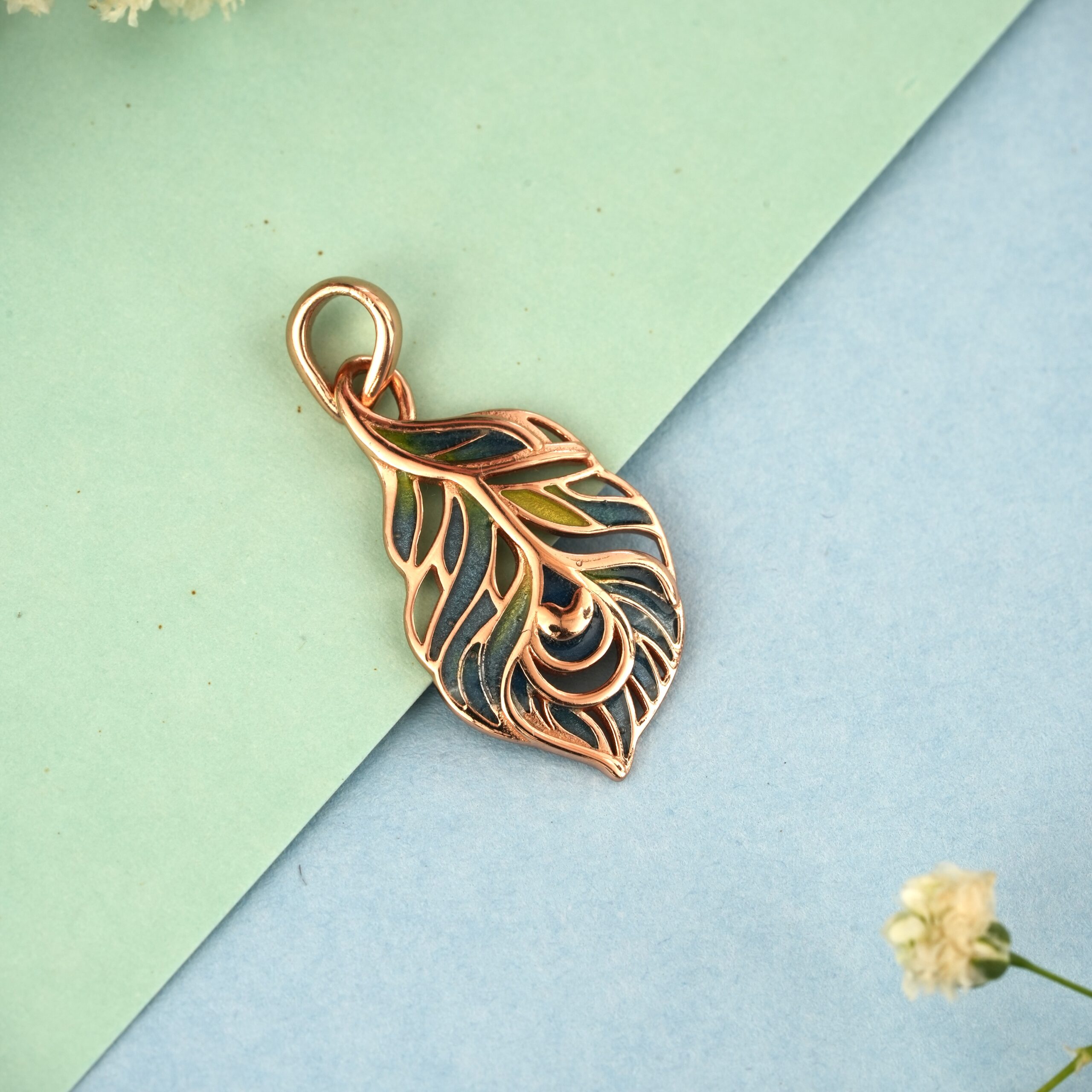Embrace unique elegance with this Whimsical Peacock Feather Pendant. This sophisticated piece is crafted from genuine, hypoallergenic 925 sterling silver and features a luxurious Rose Gold Plating.The intricate peacock feather design showcases stunning enamel detailing in shades of blue, green, and gold, capturing the feather’s iconic eye pattern. The Rose Gold Plated 925 Sterling Silver Pendant is a striking and unique accessory, perfect for girls and teens. This meaningful pendant symbolizes integrity and beauty and makes an ideal, long-lasting gift for special occasions or for the nature lover.